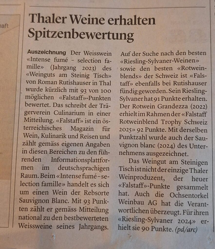 Herzlichen Dank St. Galler Tagblatt und Culinarium für die schöne Berichterstattung zu unseren ausgezeichneten Weinen.